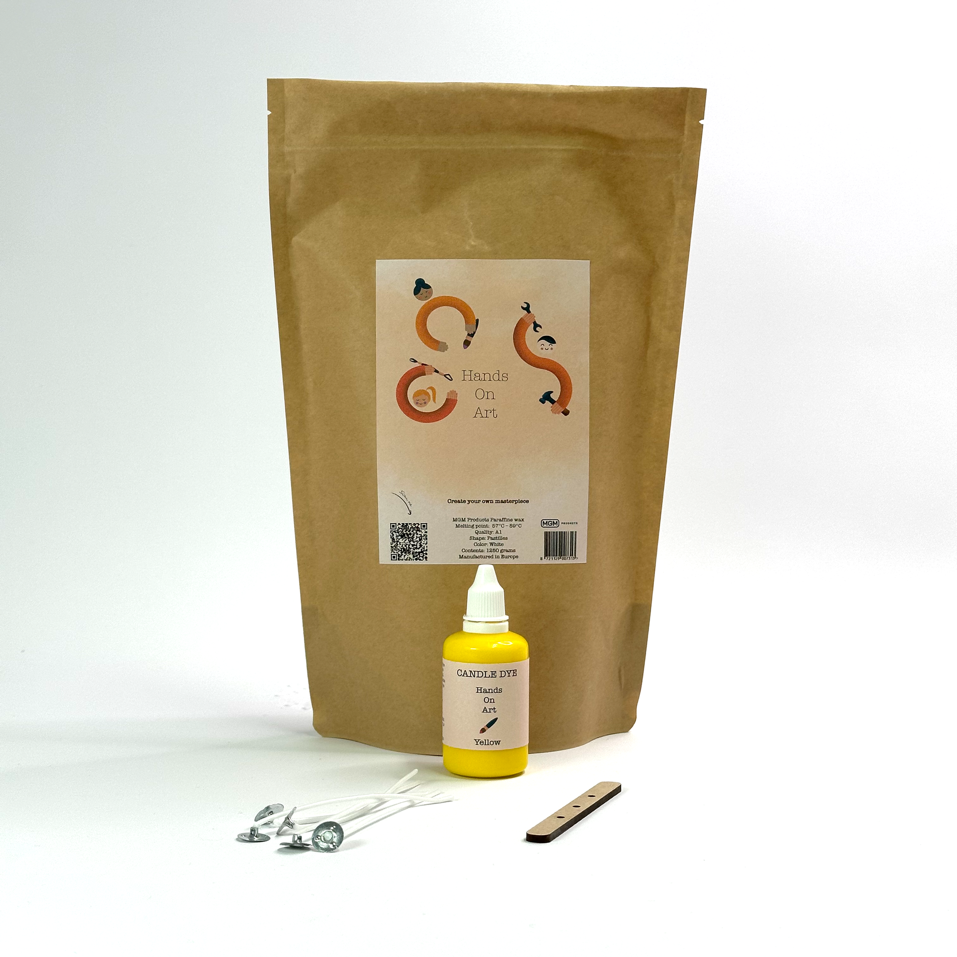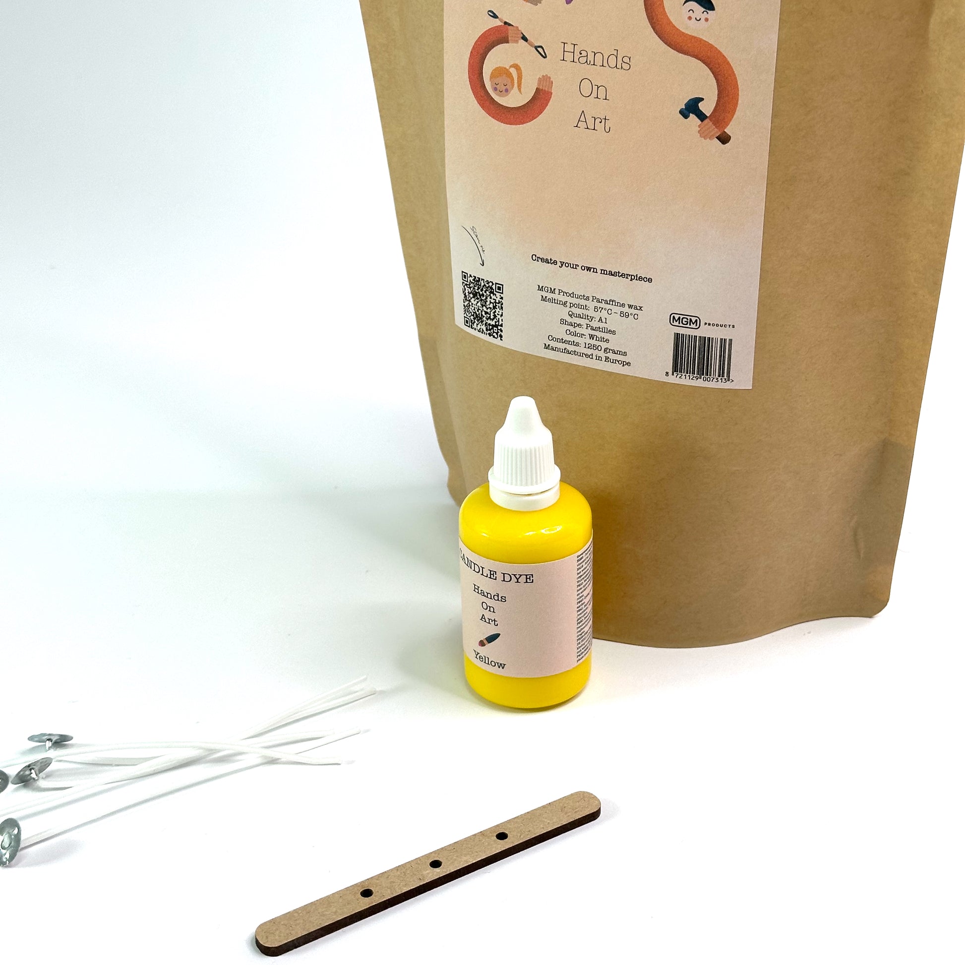 Hands On Art - Basis Kaarsenmaakset - 1,25 kg Kaarsvet & 50/20/10 ml gele candle dye
