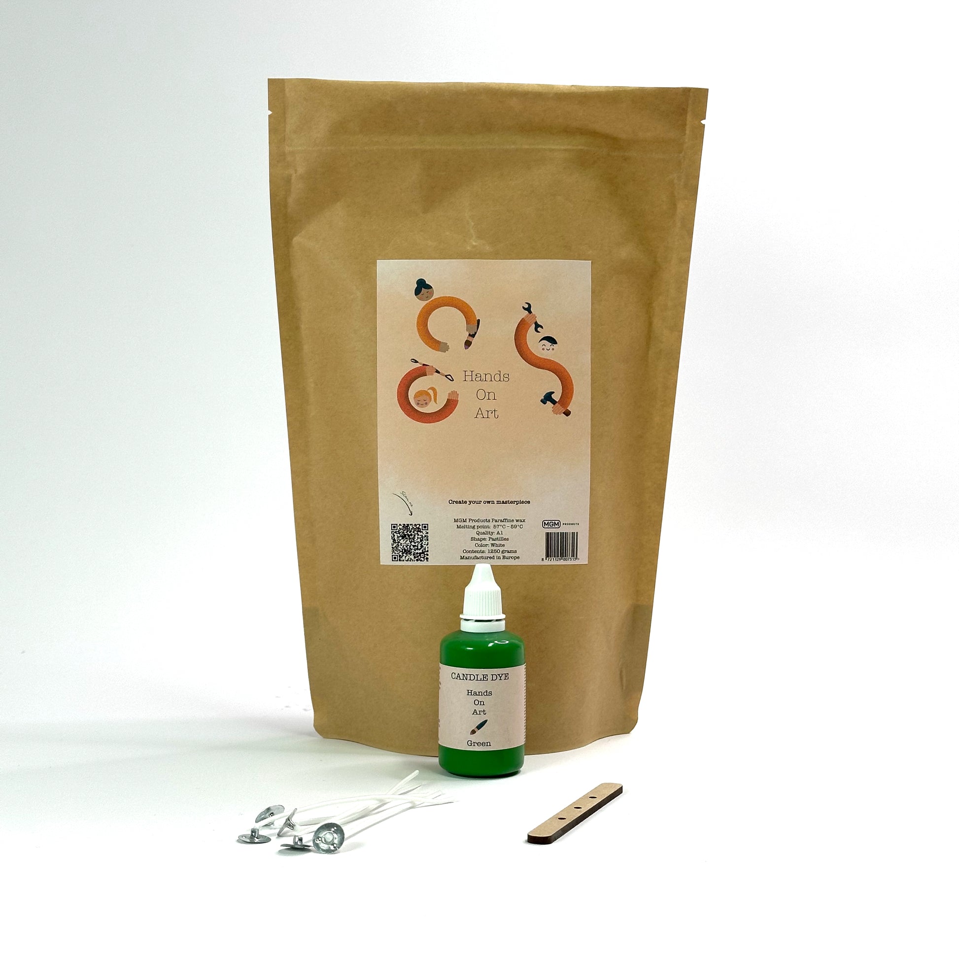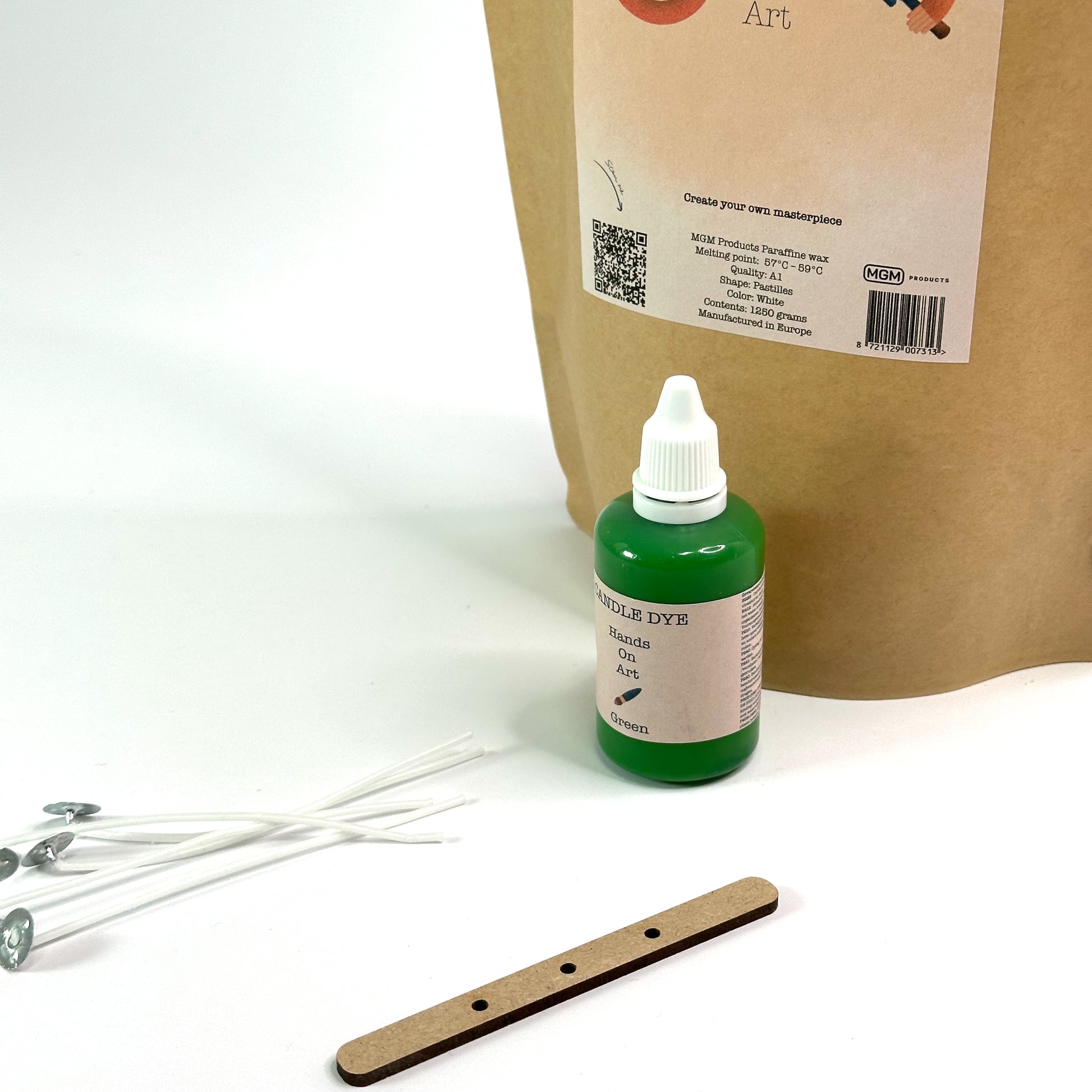 Hands On Art - Basis Kaarsenmaakset - 1,25 kg Kaarsvet & 50/20/10 ml groene candle dye
