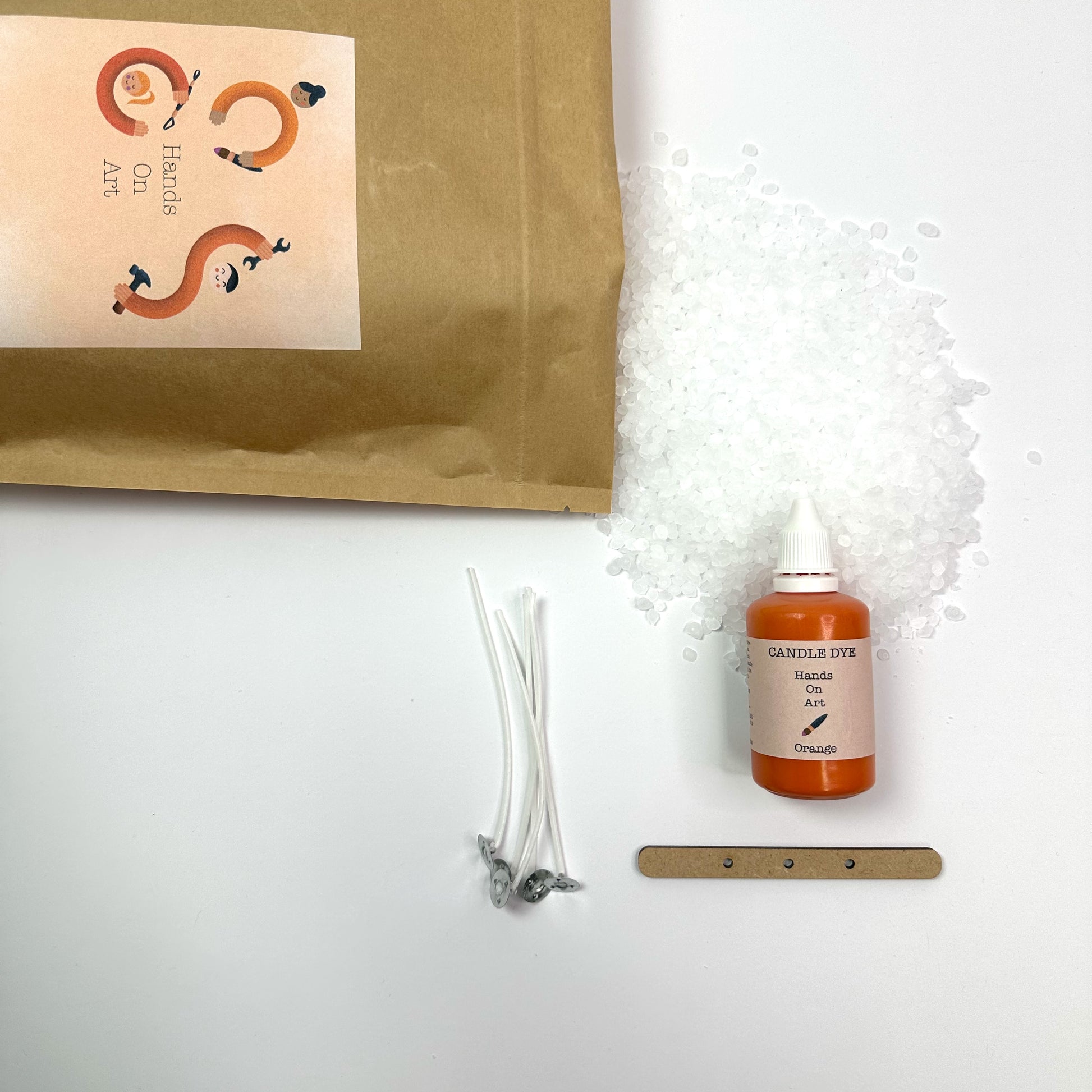 Hands On Art - Basis Kaarsenmaakset - 1,25 kg Kaarsvet & 50/20/10 ml oranje candle dye